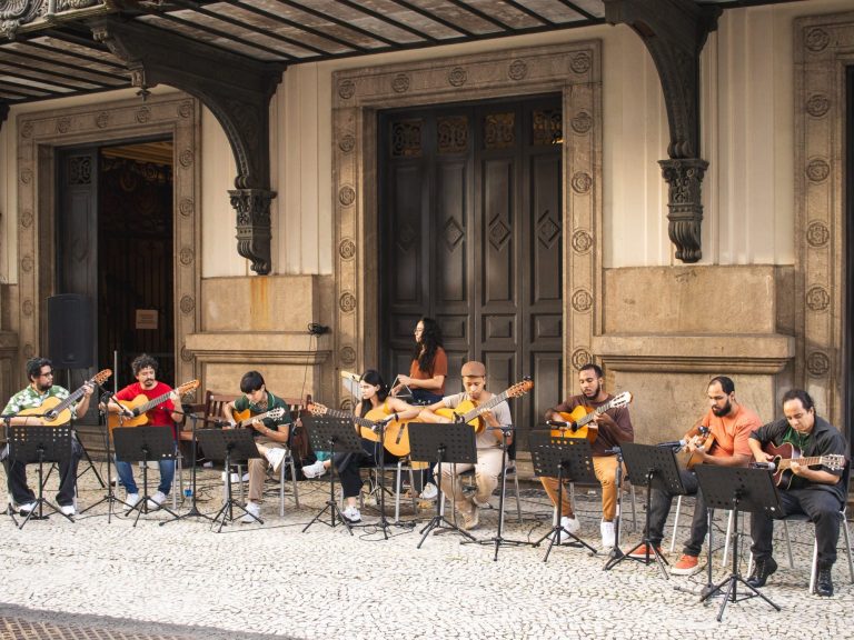 Das Gitarrenensemble der Musikschule Rocinha trat beim Open Doors Boulevard auf, einer Veranstaltung des Stadttheaters von Rio de Janeiro. Die Gruppe präsentierte dem Publikum ein Repertoire, das von der Sensibilität, Spielfreude und musikalischen Kraft geprägt war, die den Geist der Musikschule auszeichnen.